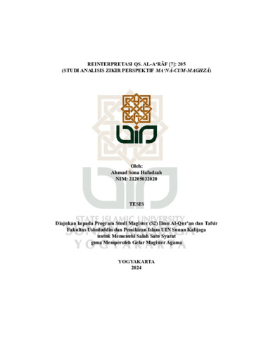 Ahmad Sona Hafadzah, NIM.: 21205032020 (2024) REINTERPRETASI QS. AL-A‘RAF [7]: 205 (Studi Analisis Zikir Perspektif Ma‘Na-Cum-Maghza). Masters thesis, UIN Sunan Kalijaga Yogyakarta.