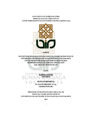 Rahima Safitri, NIM.: 20103050026 (2024) LONG DISTANCE MARRIAGE (LDM) SEBAGAI ALASAN CERAI GUGAT (STUDI TERHADAP PUTUSAN NOMOR 1302/Pdt.G/2020/PA.Smn). Skripsi thesis, UIN SUNAN KALIJAGA YOGYAKARTA.
