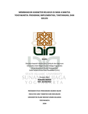 Nushrotin Wafiroh, NIM.: 20104010067 (2024) MEMBANGUN KARAKTER RELIGIUS DI MAN 4 BANTUL YOGYAKARTA: PROGRAM, IMPLEMENTASI, TANTANGAN, DAN SOLUSI. Skripsi thesis, UIN SUNAN KALIJAGA YOGYAKARTA.