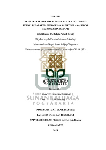 Text (PEMILIHAN ALTERNATIF SUPPLIER BAHAN BAKU TEPUNG TERIGU PADA BAKPIA MENGGUNAKAN METODE ANALYTICAL NETWORK PROCESS (ANP) (Studi Kasus: CV Bakpia Pathok Terbit))