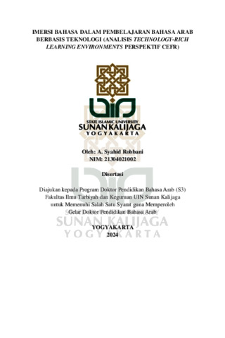 A. Syahid Robbani, NIM.: 21304021002 (2024) IMERSI BAHASA DALAM PEMBELAJARAN BAHASA ARAB BERBASIS TEKNOLOGI (ANALISIS TECHNOLOGY-RICH LEARNING ENVIRONMENTS PERSPEKTIF CEFR). Doctoral thesis, UIN SUNAN KALIJAGA YOGYAKARTA.