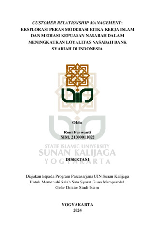 Reni Furwanti, NIM.: 21300011022 (2024) CUSTOMER RELATIONSHIP MANAGEMENT: EKSPLORASI PERAN MODERASI ETIKA KERJA ISLAM DAN MEDIASI KEPUASAN NASABAH DALAM MENINGKATKAN LOYALITAS NASABAH BANK SYARIAH DI INDONESIA. Doctoral thesis, UIN SUNAN KALIJAGA YOGYAKARTA.