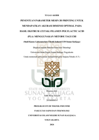 Text (PENENTUAN PARAMETER MESIN 3D PRINTING UNTUK MENDAPATKAN AKURASI DIMENSI OPTIMAL PADA HASIL EKSTRUSI (CETAK) FILAMEN POLYLACTIC ACID (PLA) MENGGUNAKAN METODE TAGUCHI (STUDI KASUS: LABORATORIUM TEKNIK INDUSTRI UIN SUNAN KALIJAGA))