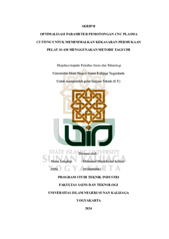 Text (OPTIMALISASI PARAMETER PEMOTONGAN CNC PLASMA CUTTING UNTUK MEMINIMALKAN KEKASARAN PERMUKAAN PELAT SS 430 MENGGUNAKAN METODE TAGUCHI)