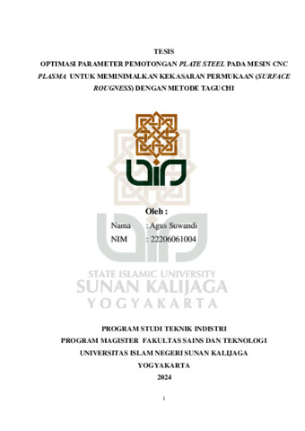 Text (OPTIMASI PARAMETER PEMOTONGAN PLATE STEEL PADA MESIN CNC PLASMA UNTUK MEMINIMALKAN KEKASARAN PERMUKAAN (SURFACE ROUGNESS) DENGAN METODE TAGUCHI)