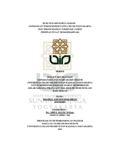 Text (HUKUM WARIS HARTA HARAM (PANDANGAN TOKOH KOMISI FATWA MUI DI YOGYAKARTA DAN TOKOH MAJELIS TARJIH DAN TAJDID PIMPINAN PUSAT MUHAMMADIYAH))