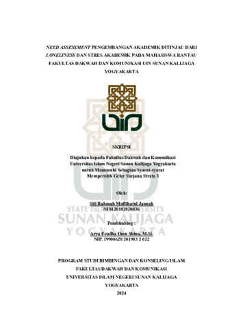 Text (NEED ASSESSMENT PENGEMBANGAN AKADEMIK DITINJAU DARI LONELINESS DAN STRES AKADEMIK PADA MAHASISWA RANTAU FAKULTAS DAKWAH DAN KOMUNIKASI UIN SUNAN KALIJAGA YOGYAKARTA)