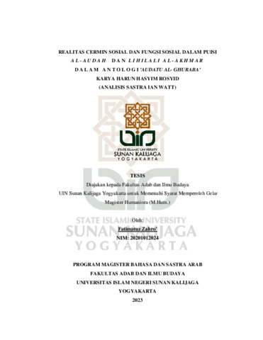 Fatimatuz Zahro’, NIM.: 20201012024 (2023) DALAM ANTOLOGI’AUDATU AL- GHURABA’ KARYA HARUN HASYIM ROSYID (ANALISIS SASTRA IAN WATT). Masters thesis, UIN SUNAN KALIJAGA YOGYAKARTA.