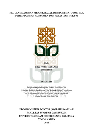 Diky Faqih Maulana, S.H., M.H., NIM.: 21303011005 (2024) REGULASI JAMINAN PRODUK HALAL DI INDONESIA: OTORITAS, PERLINDUNGAN KONSUMEN DAN KEPASTIAN HUKUM. Doctoral thesis, UIN SUNAN KALIJAGA YOGYAKARTA.