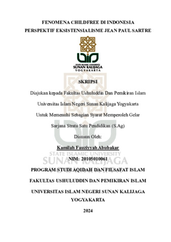 Kamilah Fauziyyah Abubakar, NIM.: 20105010061 (2024) FENOMENA CHILDFREE DI INDONESIA PERSPEKTIF EKSISTENSIALISME JEAN PAUL SARTRE. Skripsi thesis, UIN SUNAN KALIJAGA YOGYAKARTA.