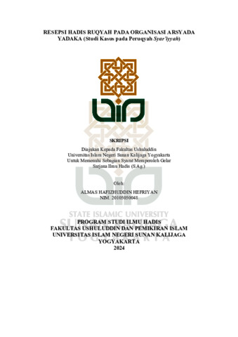 Text (RESEPSI HADIS RUQYAH PADA ORGANISASI ARSYADA YADAKA (STUDI KASUS PADA PERUQYAH SYAR’IYYAH))