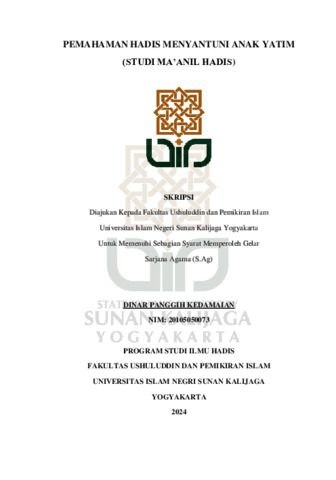 Dinar Panggih Kedamaian, NIM.: 20105050073 (2024) PEMAHAMAN HADIS MENYANTUNI ANAK YATIM (STUDI MA’ANIL HADIS). Skripsi thesis, UIN SUNAN KALIJAGA YOGYAKARTA.