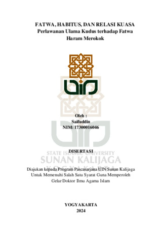 Saifuddin, NIM.: 17300016046 (2024) FATWA, HABITUS, DAN RELASI KUASA Perlawanan Ulama Kudus terhadap Fatwa Haram Merokok. Doctoral thesis, UIN SUNAN KALIJAGA YOGYAKARTA.