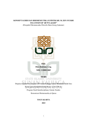 Text (KONSEP TAUHID DAN HERMENEUTIKA SUFISTIK KH. M. ZEN SYUKRI DALAM KITAB “QUTUL QALBI” (Perspektif Hermeneutika Filosofis Hans-Georg Gadamer))