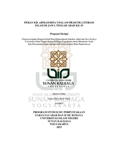 Azkia Firsty Octa Vinna, NIM.: 16140057 (2023) PERAN KH. AHMAD RIFA’I DALAM PRAKTIK LITERASI ISLAM DI JAWA TENGAH ABAD KE-19. Skripsi thesis, UIN SUNAN KALIJAGA YOGYAKARTA.