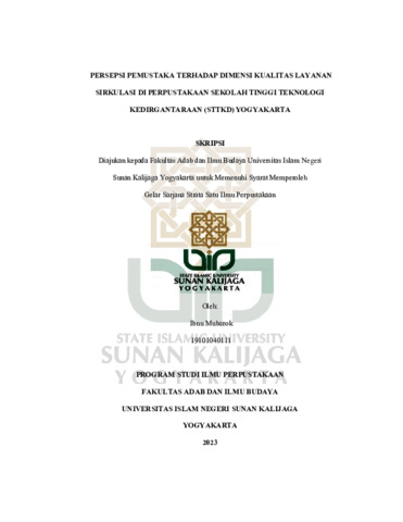 Ibnu Mubarok, NIM.: 19101040111 (2023) PERSEPSI PEMUSTAKA TERHADAP DIMENSI KUALITAS LAYANAN SIRKULASI DI PERPUSTAKAAN SEKOLAH TINGGI TEKNOLOGI KEDIRGANTARAAN (STTKD) YOGYAKARTA. Skripsi thesis, UIN SUNAN KALIJAGA YOGYAKARTA.