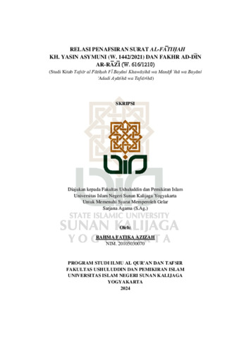 Text (RELASI PENAFSIRAN SURAT AL-FATIHAH KH. YASIN ASYMUNI (W. 1442/2021) DAN FAKHR AD-DIN AR-RAZI (W. 616/1210) (Studi Kitab Tafsīr al Fātih}ah Fi Bayāni Khawās}ihā wa Manāfi’ihā wa Bayāni ‘Adadi Ayātihā wa Tafsīrihā))