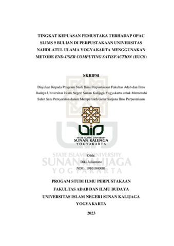Text (TINGKAT KEPUASAN PEMUSTAKA TERHADAP OPAC SLIMS 9 BULIAN DI PERPUSTAKAAN UNIVERSITAS NAHDLATUL ULAMA YOGYAKARTA MENGGUNAKAN METODE END-USER COMPUTING SATISFACTION (EUCS))