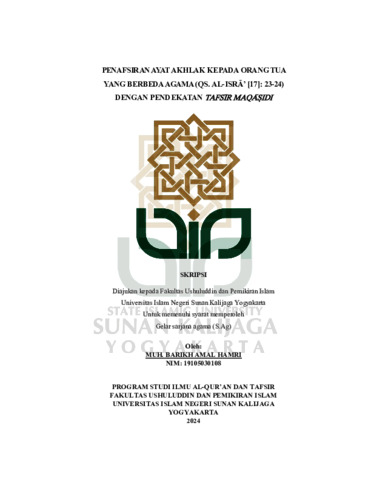 Muh. Barikh Amal Hamri, NIM.: 19105030108 (2024) PENAFSIRAN AYAT AKHLAK KEPADA ORANG TUA YANG BERBEDA AGAMA (QS. AL-ISRA’ [17]: 23-24) DENGAN PENDEKATAN TAFSIR MAQASIDI. Skripsi thesis, UIN SUNAN KALIJAGA YOGYAKARTA.