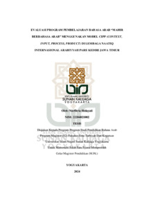 Nurfitria Hidayati, NIM.: 22204021002 (2024) EVALUASI PROGRAM PEMBELAJARAN BAHASA ARAB “MAHIR BERBAHASA ARAB” MENGGUNAKAN MODEL CIPP (CONTEXT, INPUT, PROCESS, PRODUCT) DI LEMBAGA NAATIQ INTERNASIONAL ARABIYYAH PARE KEDIRI JAWA TIMUR. Masters thesis, UIN SUNAN KALIJAGA YOGYAKARTA.