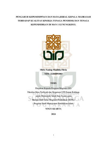 Faning Maulida Fitria, NIM.: 22204091003 (2024) PENGARUH KEPEMIMPINAN DAN MANAJERIAL KEPALA MADRASAH TERHADAP KUALITAS KINERJA TENAGA PENDIDIK DAN TENAGA KEPENDIDIKAN DI MAN 1 GUNUNGKIDUL. Masters thesis, UIN SUNAN KALIJAGA YOGYAKARTA.