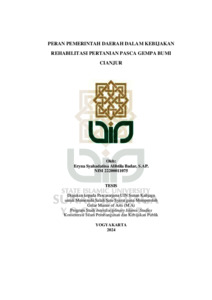 Eryna Syahadatina Alibtila Badar, S.AP., NIM.: 22200011075 (2024) PERAN PEMERINTAH DAERAH DALAM KEBIJAKAN REHABILITASI PERTANIAN PASCA GEMPA BUMI CIANJUR. Masters thesis, UIN SUNAN KALIJAGA YOGYAKARTA.