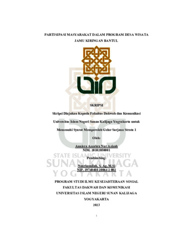 Annisya Azzahra Nur Azizah, NIM.: 20102050001 (2024) PARTISIPASI MASYARAKAT DALAM PROGRAM DESA WISATA JAMU KIRINGAN BANTUL. Skripsi thesis, UIN SUNAN KALIJAGA YOGYAKARTA.