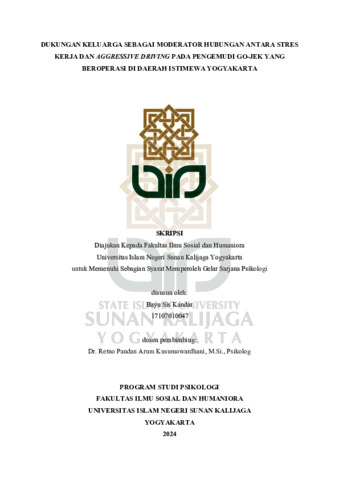 Text (DUKUNGAN KELUARGA SEBAGAI MODERATOR HUBUNGAN ANTARA STRES KERJA DAN AGGRESSIVE DRIVING PADA PENGEMUDI GO-JEK YANG BEROPERASI DI DAERAH ISTIMEWA YOGYAKARTA)