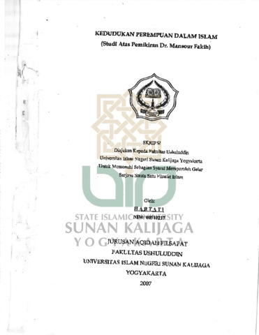Hartati, NIM.: 00510217 (2007) KEDUDUKAN PEREMPUAN DALAM ISLAM (Studi Atas Pemikiran Dr. Mansour Fakih). Skripsi thesis, UIN SUNAN KALIJAGA YOGYAKARTA.