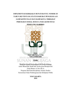 Muh Aidil Putra, S. Sos, NIM.: 22200011084 (2024) IMPLEMENTASI KEBIJAKAN BUPATI BANTUL NOMOR 333 TAHUN 2023 TENTANG STATUS DARURAT PENGELOLAAN SAMPAH PIYUNGAN DAN DAMPAKNYA TERHADAP PERUBAHAN SOSIAL-BUDAYA PADA KOMUNITAS PEMULUNG MARDIKO. Masters thesis, UIN SUNAN KALIJAGA YOGYAKARTA.