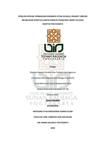 Text (KORELASI ANTARA PEMBIASAAN MEMBACA KITAB DALAILUL KHAIRAT DENGAN KECERDASAN SPIRITUAL SANTRI PONDOK PESANTREN UMMU SA’ADAH KRAPYAK YOGYAKARTA)