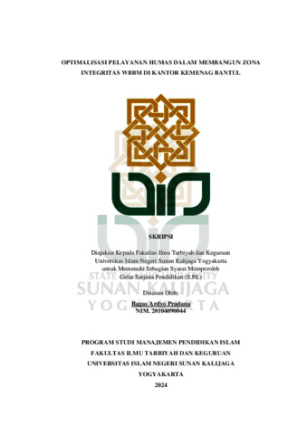 Text (OPTIMALISASI PELAYANAN HUMAS DALAM MEMBANGUN ZONA INTEGRITAS WBBM DI KANTOR KEMENAG BANTUL)