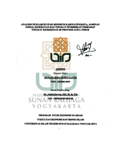 Reza Rahma Nursuasnto, NIM.: 20108010095 (2024) ANALISIS PENGARUH UPAH MINIMUM KABUPATEN/KOTA, JAMINAN SOSIAL KESEHATAN DAN TINGKAT PENDIDIKAN TERHADAP TINGKAT KEMISKINAN DI PROVINSI JAWA TIMUR. Skripsi thesis, UIN SUNAN KALIJAGA YOGYAKARTA.