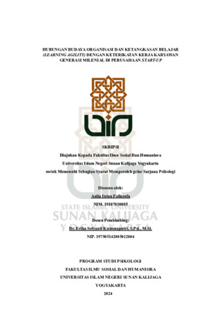 Aulia Intan Failasufa, NIM.: 19107010085 (2024) HUBUNGAN BUDAYA ORGANISASI DAN KETANGKASAN BELAJAR (LEARNING AGILITY) DENGAN KETERIKATAN KERJA KARYAWAN GENERASI MILENIAL DI PERUSAHAAN START-UP. Skripsi thesis, UIN SUNAN KALIJAGA YOGYAKARTA.