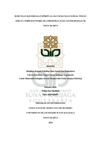Text (HUBUNGAN KECERDASAN SPIRITUAL DAN DUKUNGAN SOSIAL TEMAN SEBAYA TERHADAP PERILAKU PROSOSIAL PADA SANTRI REMAJA DI YOGYAKARTA)