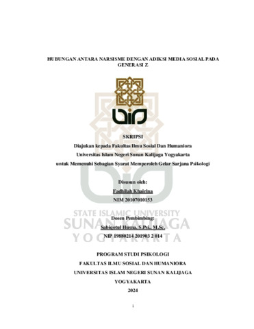 Fadhilah Khairina, NIM.: 20107010153 (2024) HUBUNGAN ANTARA NARSISME DENGAN ADIKSI MEDIA SOSIAL PADA GENERASI Z. Skripsi thesis, UIN SUNAN KALIJAGA YOGYAKARTA.