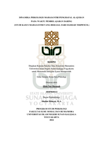 Text (DINAMIKA PSIKOLOGIS MAHASANTRI PENGHAFAL AL-QURAN PADA WAKTU PEMBELAJARAN DARING (STUDI KASUS MAHASANTRI YANG BERASAL DARI DAERAH TERPENCIL))