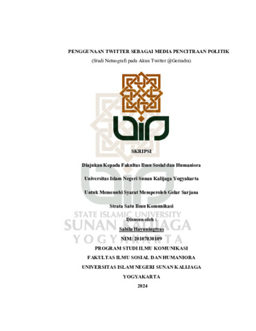 Sabila Hayuningtyas, NIM.: 20107030109 (2024) PENGGUNAAN TWITTER SEBAGAI MEDIA PENCITRAAN POLITIK (STUDI NETNOGRAFI PADA AKUN TWITTER @GERINDRA). Skripsi thesis, UIN SUNAN KALIJAGA YOGYAKARTA.