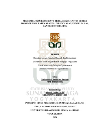 Muhammad Yudistira Santoso, NIM. 20102030062 (2024) PENGEMBANGAN EKOWISATA BERBASIS KOMUNITAS DI DESA PONGGOK KABUPATEN KLATEN: PERENCANAAN, PENGELOLAAN, DAN PENDISTRIBUSIAN. Skripsi thesis, UIN SUNAN KALIJAGA YOGYAKARTA.