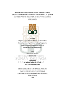 Text (PENGARUH INTENSITAS MENGAKSES AKUN INSTAGRAM @RUANGNDERES TERHADAP MOTIVASI MENGHAFAL AL-QUR’AN SANTRI DI PONDOK PESANTREN AL MUNAWWIR KRAPYAK YOGYAKARTA)