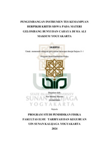Nur Minatul Khusna, NIM.: 20104050001 (2024) PENGEMBANGAN INSTRUMEN TES KEMAMPUAN BERPIKIR KRITIS SISWA PADA MATERI GELOMBANG BUNYI DAN CAHAYA DI MA ALI MAKSUM YOGYAKARTA. Skripsi thesis, UIN SUNAN KALIJAGA YOGYAKARTA.
