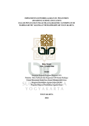 Text (IMPLEMENTASI PEMBELAJARAN DI PESANTREN (BOARDING SCHOOL EDUCATION) DALAM PENANAMAN NILAI-NILAI KARAKTER SANTRIWATI DI MADRASAH MU’ALLIMAAT MUHAMMADIYAH YOGYAKARTA)