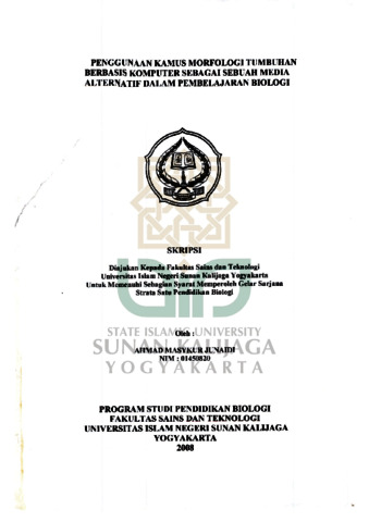Ahmad Masykur Junaidi, NIM.: 01450820 (2008) PENGGUNAAN KAMUS MORFOLOGI TUMBUHAN BERBASIS KOMPUTER SEBAGAI MEDIA ALTERNATIF DALAM PEMBELAJARAN BIOLOGI. Skripsi thesis, UIN SUNAN KALIJAGA YOGYAKARTA.