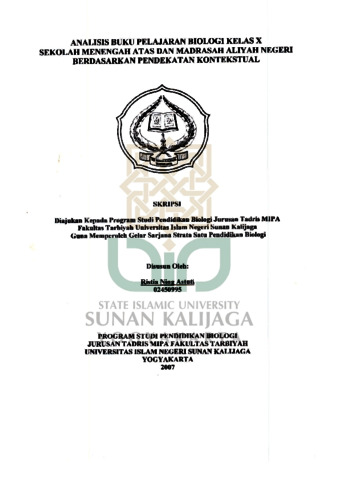 Ristia Ning Astuti, NIM.: 02450995 (2007) ANALAISIS BUKU PELAJAR BIOLOGI KELAS X SEKOLAH MENENGAH ATAS DAN MADRASAH ALIYAH NEGERI BERDASARKAN PENDEKATAN KONTEKSTUAL. Skripsi thesis, UIN SUNAN KALIJAGA YOGYAKARTA.