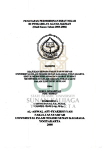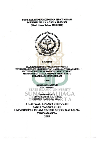 Nurul Qomariyah, NIM.: 03350127 (2008) PENETAPAN PERMOHONAN ISBAT NIKAH DI PENGADILAN AGAMA SLEMAN (STUDI KASUS TAHUN 2005 - 2006). Skripsi thesis, UIN SUNAN KALIJAGA YOGYAKARTA.
