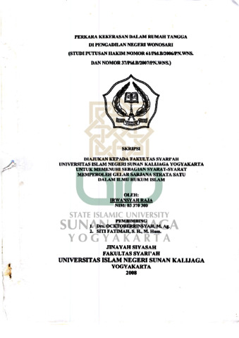 Text (PERKARA KEKERASAN DALAM RUMAH TANGGA DI PENGADILAN NEGERI WONOSARI (STUDI PUTUSAN HAKIM NOMOR 61/PID.B/2006/PN.WNS. DAN NOMOR 37/PID.B/2007/PN.WNS.))