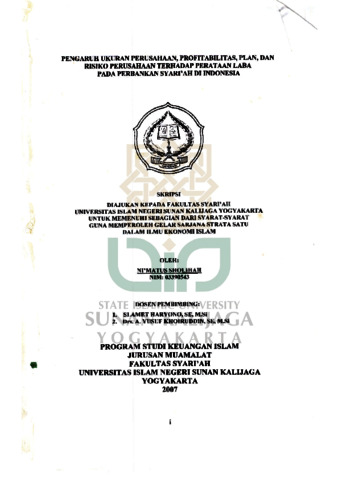 Ni'matus Sholihah, NIM.: 03390543 (2007) PENGARUH UKURAN PERUSAHAAN PROFITABILITAS, PLAN, DAN RISIKO PERUSAHAAN TERHADAP PERATAAN LABA PADA PERBANKAN SYARI'AH DI INDONESIA. Skripsi thesis, UIN SUNAN KALIJAGA YOGYAKARTA.
