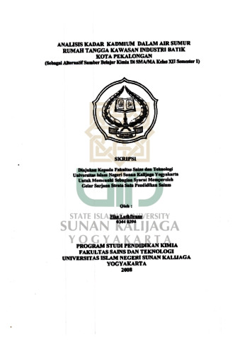 Text (ANALISIS KADAR JAMUR KADMIUM DALAM SUMUR RUMAH TANGGA KAWASAN INDUSTRI BATIK KOTA PEKALONGAN (SEBAGAI ALTERNATIF SAMBER BELAJAR KIMLA DI SMA/MA KELAS XII SEMESTER 1))