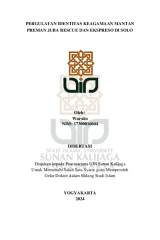 Warsito, NIM.: 17300016044 (2024) PERGULATAN IDENTITAS KEAGAMAAN MANTAN PREMAN JUBA RESCUE DAN EKSPRESO DI SOLO. Doctoral thesis, UIN SUNAN KALIJAGA YOGYAKARTA.