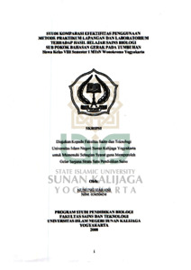 Text (STUDI KOMPARASI EFEKTIVITAS PENGGUNAAN METODE PRAKTIKUM LAPANGAN DAN LABORATURIUM TERHADAP HASIL BELAJAR SAINS BIOLOGI SUB POKOK BAHASAN GERAK PADA TUMBUHAN SISWA KELAS VIII SEMESTER I MTSN WONOKROMO YOGYAKARTA)